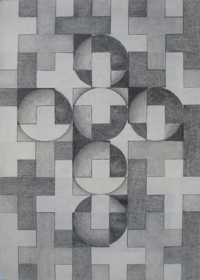 “Cruz Esferas” lápiz sobre papel 12″ x 20″