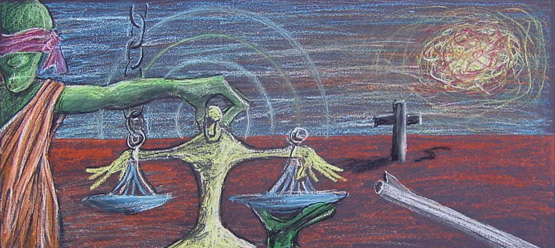 “La Justicia” pastel de aceite sobre papel negro 10″ x 22″ Posted on December 28, 2015December 29, 2015