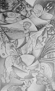 “Multifantasía” lápiz sobre papel 14″ x 24″