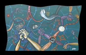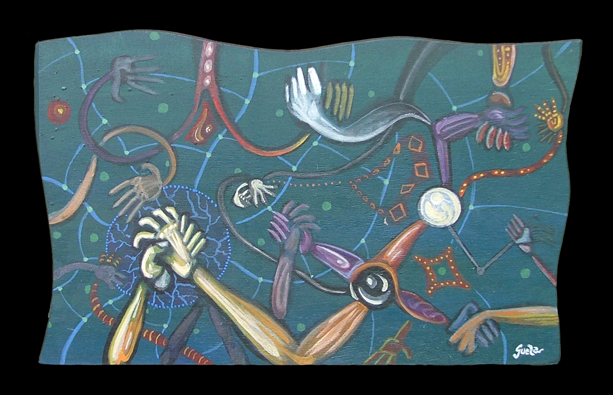 “Mano a Mano” acrílico sobre madera 12″ x 18″