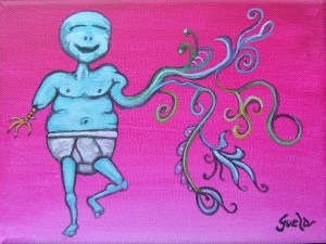 “Niño Azul” acrílico sobre canvas 6″ x 8″